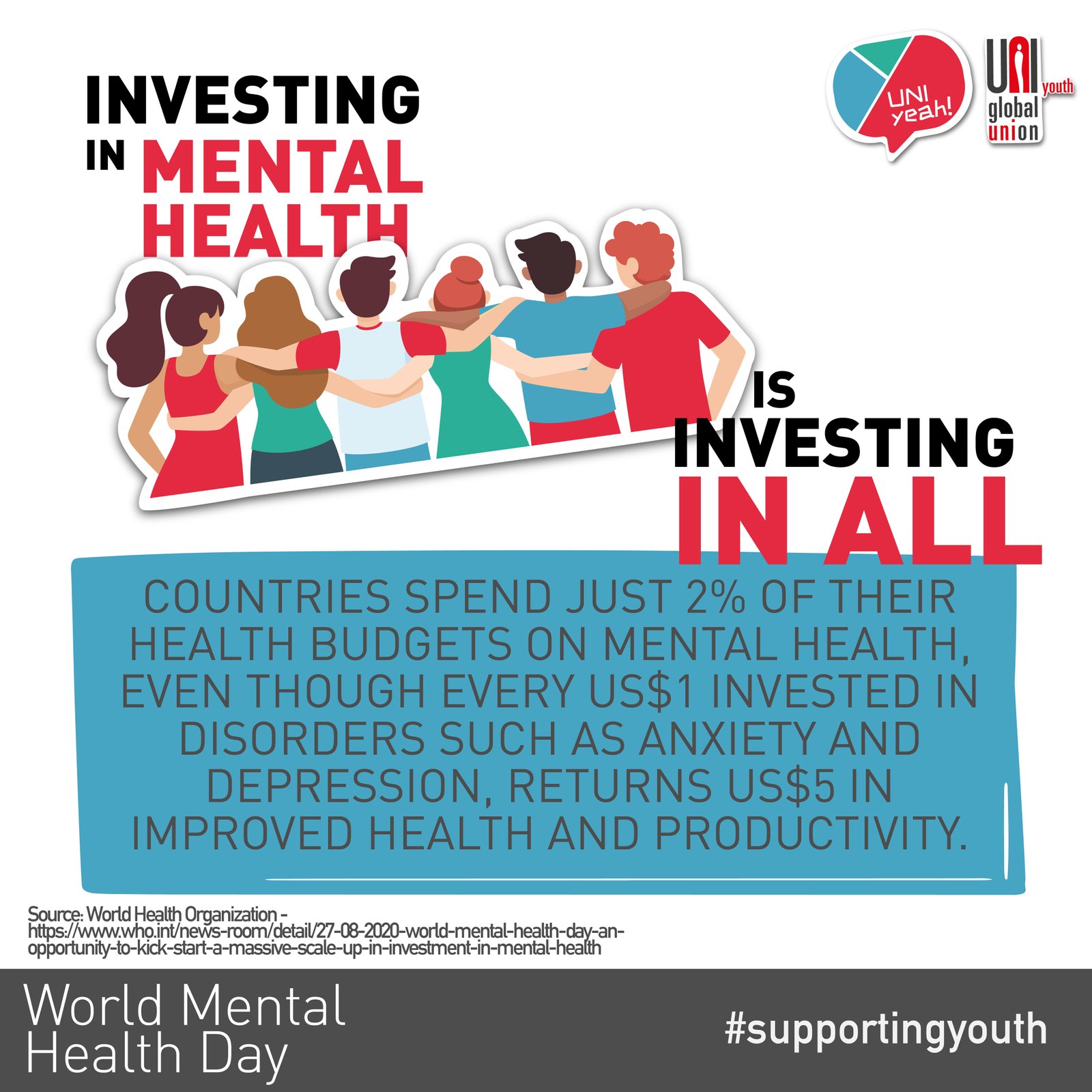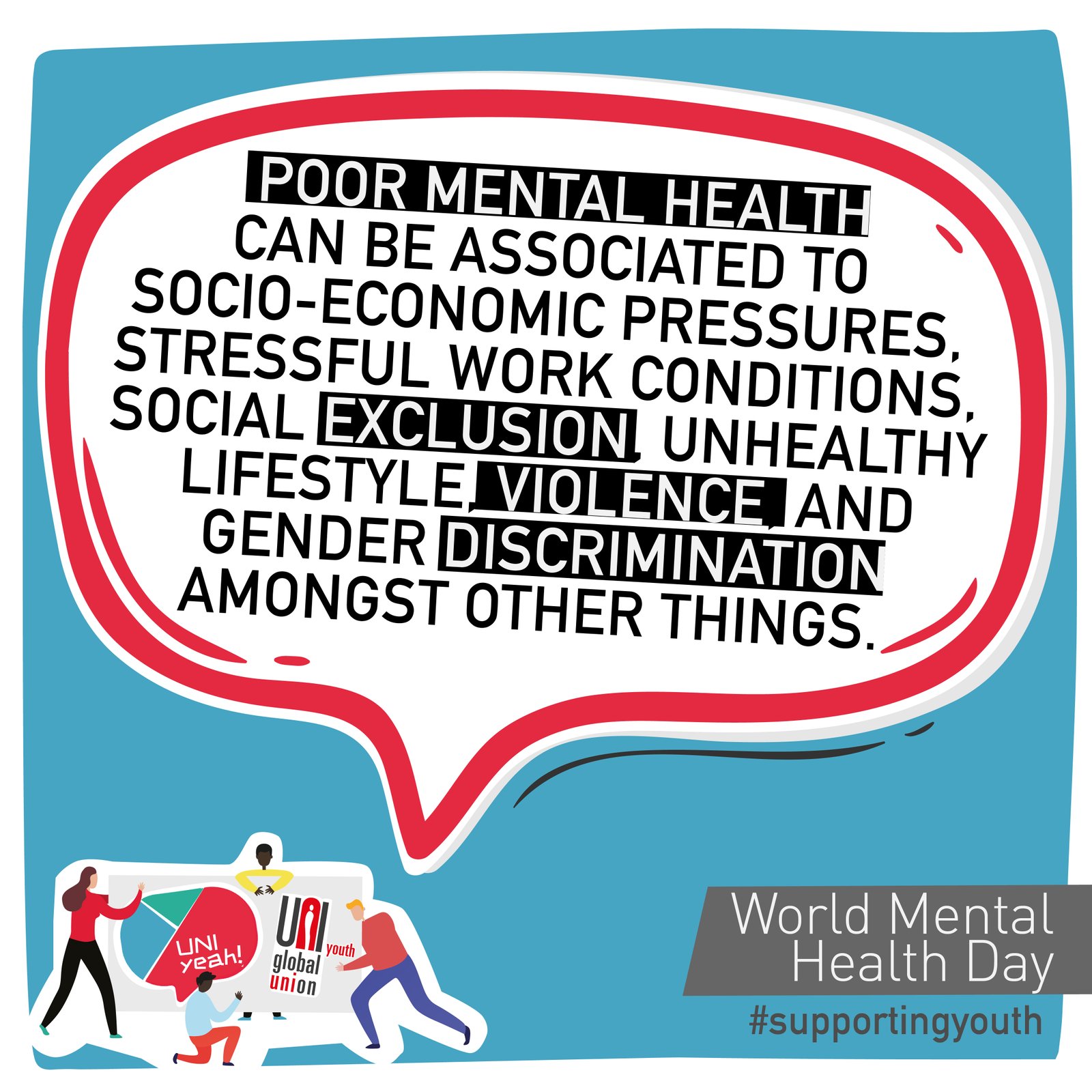 Through collective bargaining, unions can ensure that there are proper frameworks and policies in place to provide mental health assistance, and as part of its UNI Yeah! campaign, the youth arm of UNI Global Union is supporting unions who are making mental health a priority.