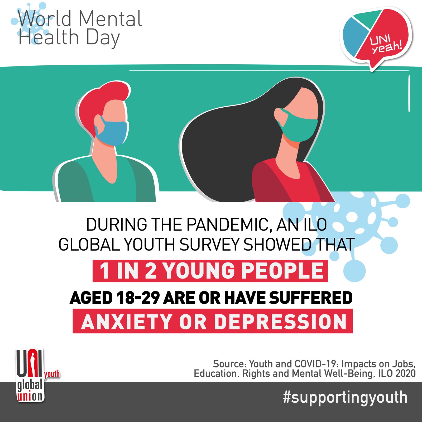 On World Mental Health Day, UNI Youth is launching a campaign to help unions combat the growing mental health crisis around the world. As the Covid-19 pandemic rages on, workers are increasingly suffering from mental health issues such as stress, burnout, anxiety, substance abuse, and depression.